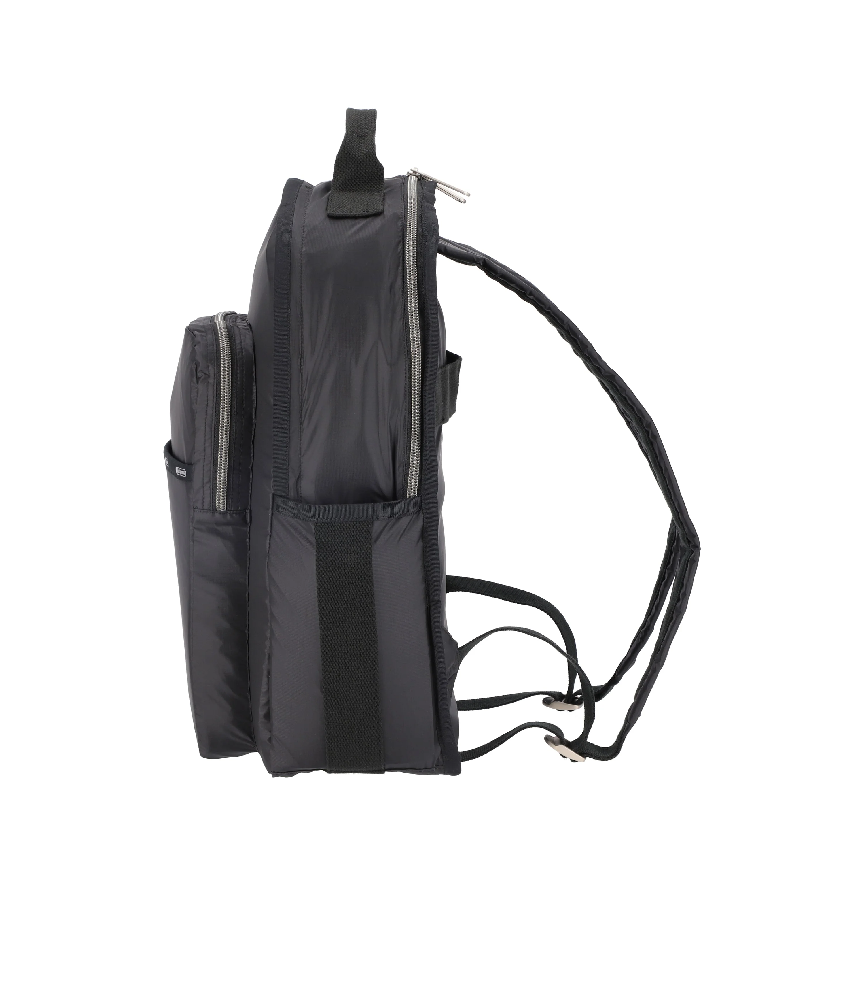This True Black Carryall Backpack delivers smart organization with two zippered compartments, a padded laptop pocket, and multiple storage options. Adjustable shoulder straps ensure comfort, while a back webbing strap slides over suitcase handles for easy travel. Buy this multi-functional backpack for work, school, or your next trip.