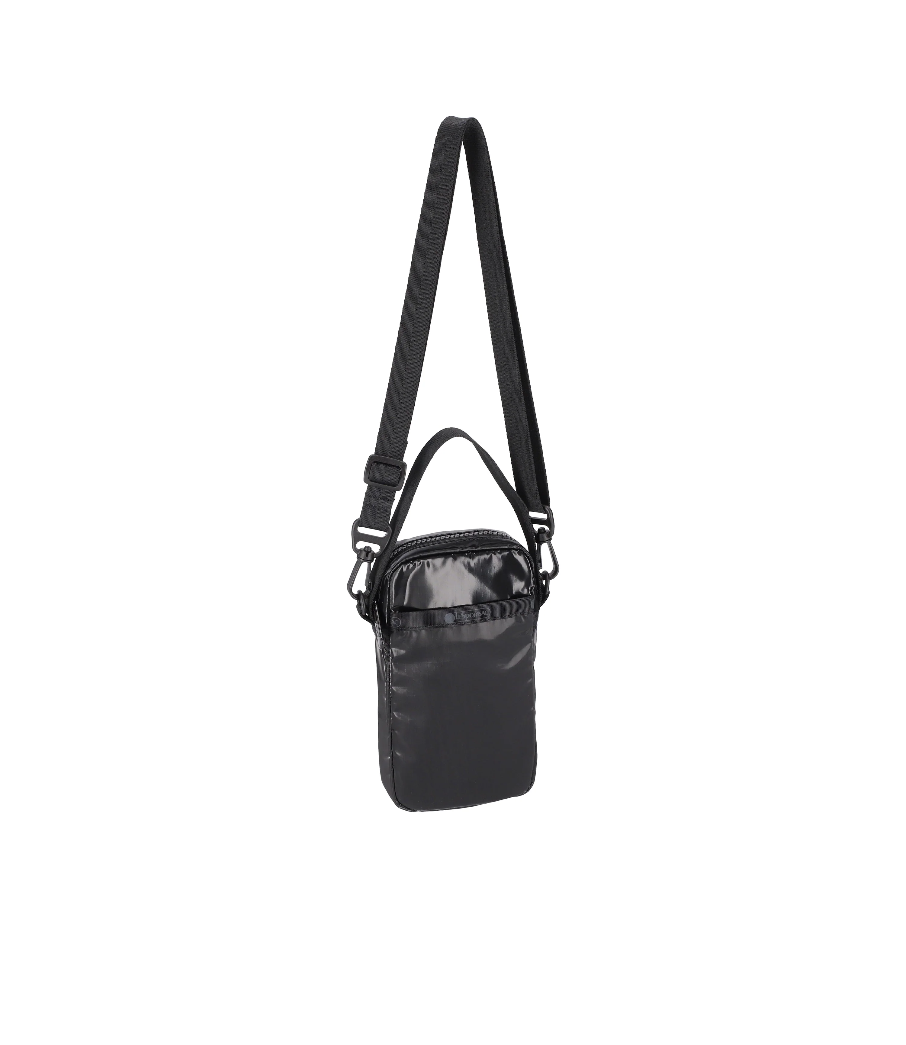 Sleek and compact, this shiny black Mini Phone Crossbody in a glossy patent finish combines style with practicality, featuring a zip-top closure and multiple pockets for easy access. The adjustable, detachable strap and top handle offer versatile carrying options, perfect for on-the-go convenience. Grab this must-have accessory today and elevate your everyday look effortlessly.
